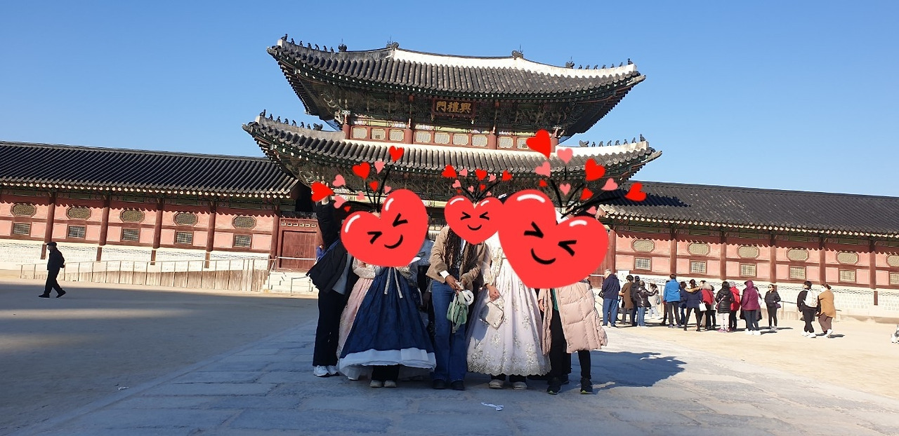 우리는 곧장 경복궁으로 갔다. 학생들은 곱게 한복으로 갈아입고 손에 영어 학습지를 꼭 쥐었다. 외국인들이 많이 오는 경복궁을 영어 교사인 내가 그냥 지나칠 리가 없었다. 5분 동안 영어로 외국인과 대화하기 미션이 학생들에게 떨어졌다. 일단은 내가 먼저 움직이기로 했다. 혼자 있는 외국인에게 양해를 구한 후 떨고 있는 학생들에게 힘이 되는 말을 해줄 수 있겠냐고 물었다. 셜리라는 그분은 상황을 즐기시는 듯했다. 덕분에 학생들과 나도 조금씩 편안하게 대화를 이어갈 수 있었다. 우리는 함께 사진을 찍었다. 그것이 출발점이었다. 학생들은 곧 뿔뿔이 흩어졌다. 그다음은 학생들의 몫이었다. 미션을 끝낸 후 밴드에 올라오는 학생들의 후기는 내가 읽었던 어떤 소설보다 재미있었다. 그 후 보름이는 식물원에서 길을 묻는 외국인을 만났을 때 경복궁에서 5명의 외국인과 이야기한 경험을 살려 여유 있게 "Follow me"를 외치며 길을 안내해 줬다고 했다. 수업의 틀에서 벗어나 학생들의 삶에 들어간 영어는 좀 더 생동감 있어 보였다.