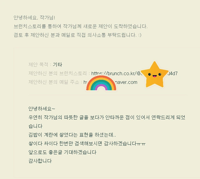 오전에 모르는 분으로부터 메일 한 통을 받았다. 읽자마자 머리가 새하얘졌다. 내 글에 맞춤법이 잘못되어 있다는 것을 알려주는 내용이었다. 빠르게 글 조회수를 확인했다. 축복인지 악몽인지 울고 싶을 정도로 평소보다 많았다. 내가 쓴 글이 아닐 거라고 부인하고 싶은 얼토당토않은 우김까지 속에서 올라왔다. 여러모로 머리를 굴려보아도 분명 내 글이었다. 일단 바로 글을 수정했다. (02화 김밥집 진상 손님 (brunch.co.kr))