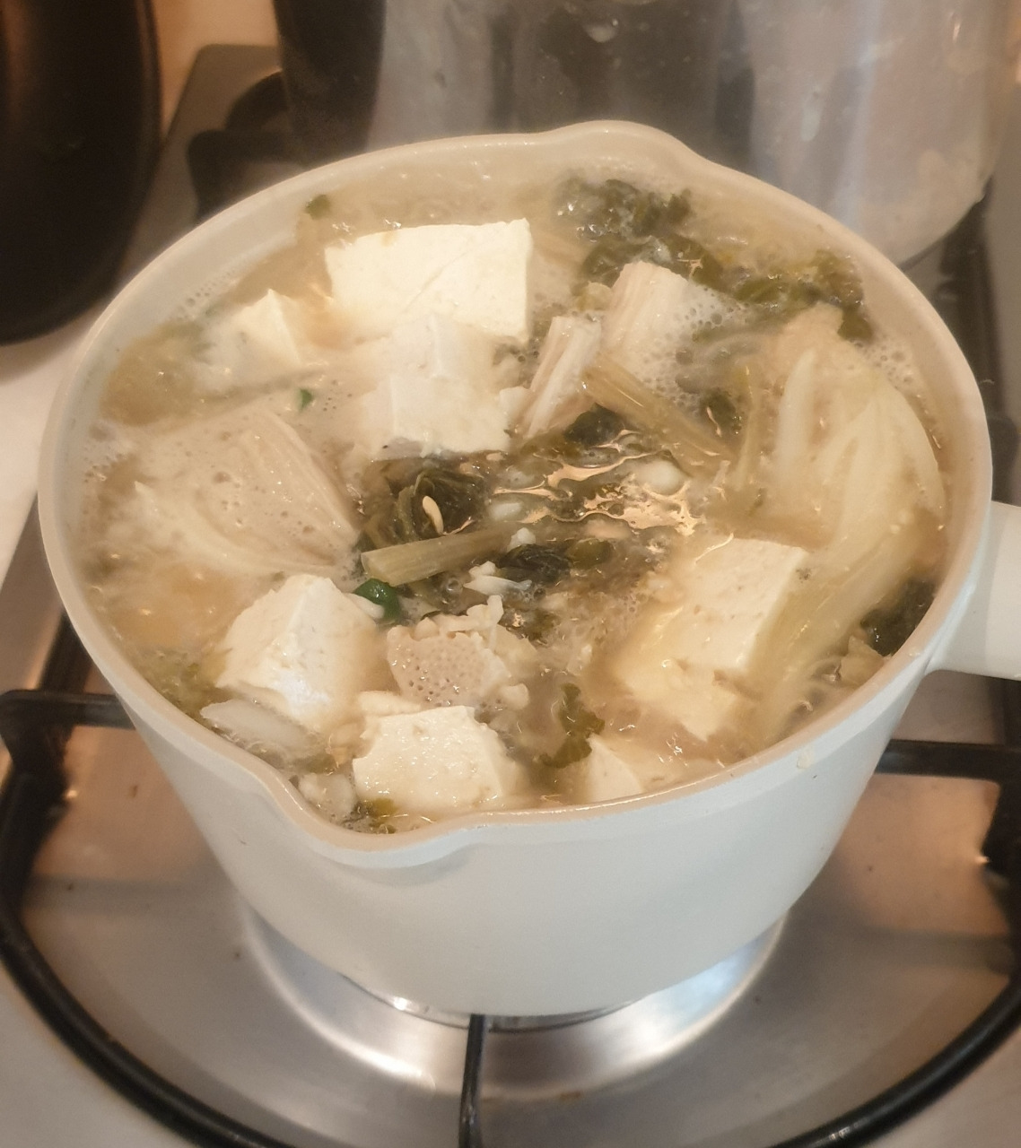 내가 만들 시래기 된장찌개가 궁금해서인지 일주일이 정말 쏜살같이 지나갔다. 그리고 오늘 아침, 일요일을 기념하며 드디어 시래기 된장찌개를 만들기 시작했다. 어젯밤에 미리 꺼내 둔 시래기는 다 녹아서 적절하게 흐물거렸다. 나는 유튜브 요리사 선배님의 가르침대로 천천히 찌개를 끓였다. 쌀뜨물에 멸치 육수를 우려낸 후 시래기와 버섯, 양파와 두부를 넣고 된장을 풀어 한소끔 끓였다. 해보지 않은 음식이라 못했던 거지 막상 만들고 나니 별것 아니라는 사실을 알 수 있어 좋았다. 충분히 할 수 있는데 지레 겁먹고 하지 않는 것들이 시래기 된장찌개 말고 또 무엇이 있을까. 제법 깊은 맛도 나는 찌개를 먹으며 내 안에 또 다른 두려움이 있다면 다 깨부수고 싶다는 생각을 했다. 우연히 성공한 찌개 하나에 허풍을 있는 대로 떨고 있었지만 나는 나의 의식의 흐름을 그냥 두었다. 누가 뭐라 해도 찌개는 맛있었고 주말은 편안했다.
