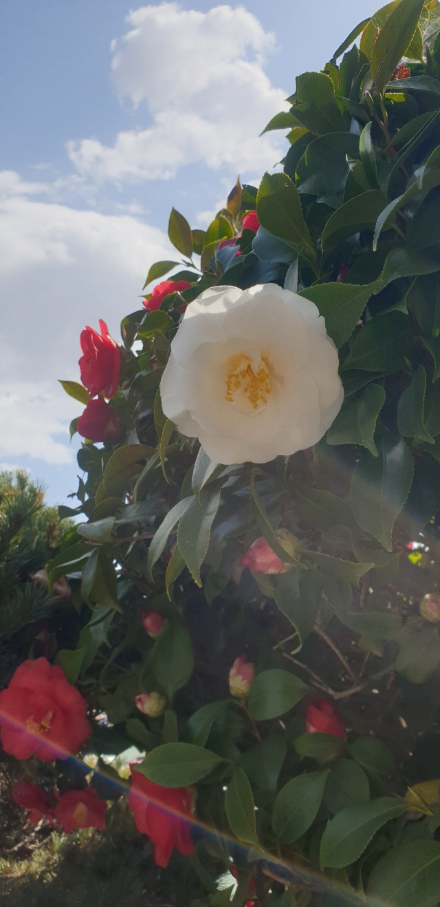 흰 꽃의 이상함에 끌려 동백나무 앞에서 한참을 서성거렸다. 옆에 있던 학생들도 한 마디씩 거들었다. 왜 이 꽃이 여기 붙어 있는 건지 아무도 몰랐지만 다른 꽃과 다르다고 꽃을 떼려는 사람은 아무도 없었다. 주변의 꽃도 흰 꽃에 영향을 받는 것 같진 않았다. 흰색과 붉은색이 더해져 연분홍빛이 나는 꽃이 없다는 게 그 증거였다. 꽃들은 그저 각자 생긴 그대로 내려오는 햇빛을 온몸으로 받고 있었다. 동백나무가 만들어낸 분위기 덕분에 나만 계절과 맞지 않는 패딩을 입고 있는 상황도 크게 부끄럽지 않았다. 그래, 멋이 뭐가 중한디, 따뜻한 게 최고지.