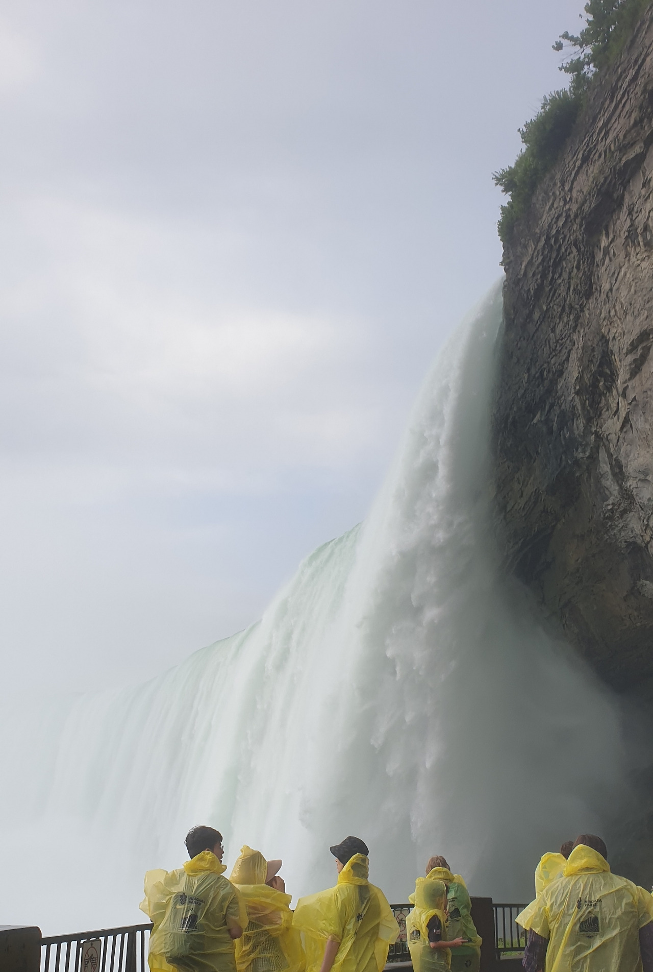 캐나다에서 처음 본 나이아가라 폭포는 딱 CG(Computer Graphics)였어. 아무리 눈을 크게 떠도 비현실적이더라고. 눈앞에 스크린이 있는 거라고 해도 크게 이상할 것 같지 않았지. 좀 더 자세히 보면 현실감이 들까. 어림잡아 수백 명이 넘는 사람들이 유람선을 타고 나이아가라 폭포 바로 코 앞까지 갔어. 표정을 보니 다들 비슷한 느낌으로 폭포를 보고 있는 듯했지. 배 끝에서 폭포를 보고 싶었던 엄마는 조그만 몸을 무기로 덩치 큰 외국인들 사이를 비집고 들어갔어. 익숙한 한국 아줌마의 파워가 느껴지자 붕 떠 있던 기분이 현실로 서서히 돌아오더라. 눈앞의 폭포보다 신나 하는 엄마를 통해 폭포를 더 많이 봤어. 우리도 덩달아 흥이 올랐지. 여행 오길 잘했다고 느낀 순간이었어.