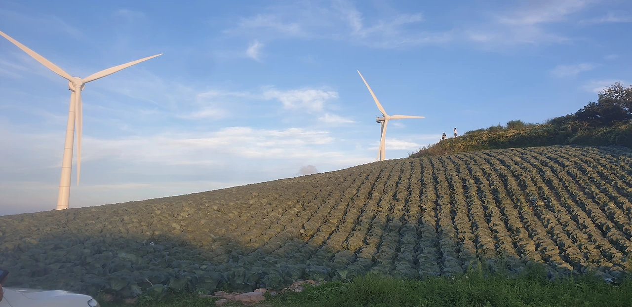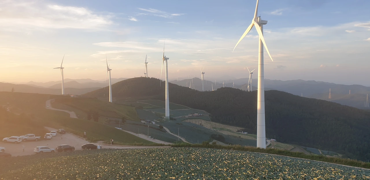정상에서 다시 본 풍력발전기는 여전히 여유롭게 돌아가고 있었어. 느긋하고 힘차게 매봉산에서 부는 산바람의 흐름을 맞추는 것 같았지. 해가 질 때가 되니 산과 어울려 풍경이 장관이더라. 처음엔 분명 멀대 같아 보일 뿐이었는데 구면이라고 이렇게 달리 봐도 되는 건가. 내 변덕에 애써 변명을 하고 싶었지만 생각하면 할수록 싱거운 건 나였더라고. 매력적인 매봉산을 보며 역시 뭐든 자세히 봐야 제대로 알 수 있구나 싶었어.