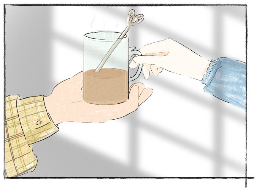 "고마우면 저 다음에도 또 커피 타게 해 주세요."