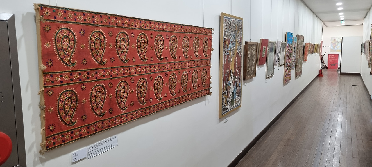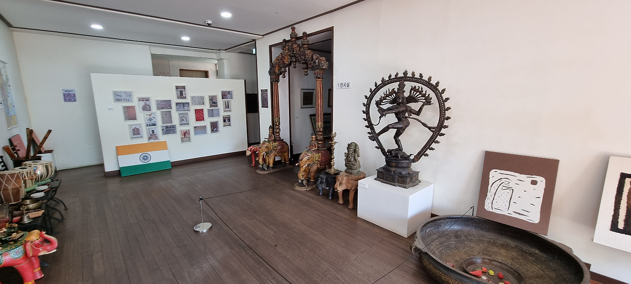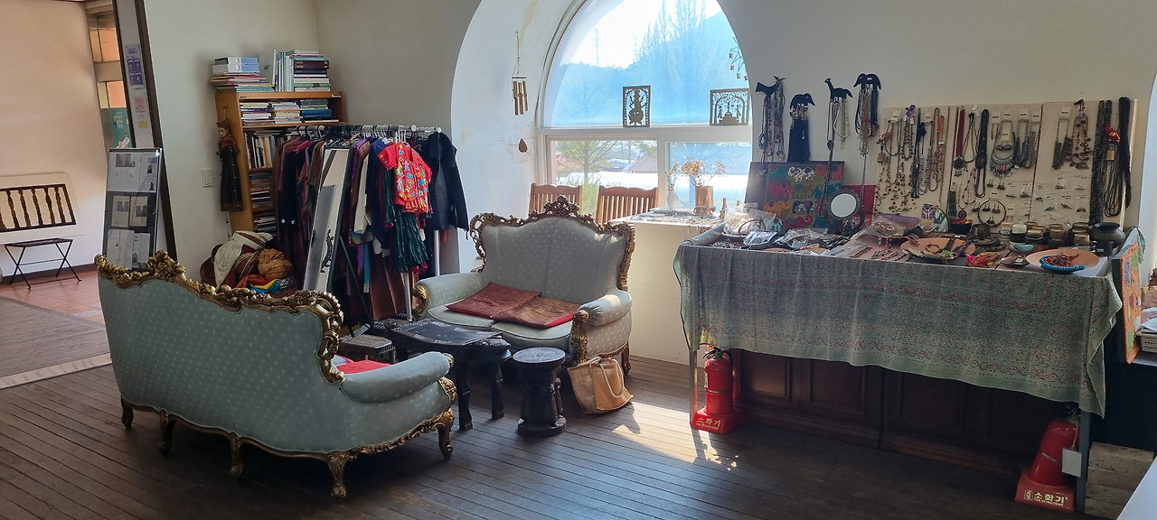 시골 분교를 개조한 듯한 아담한 건물 안에 인도의 강렬하고 특색 있는 컬러들이 가득했다.