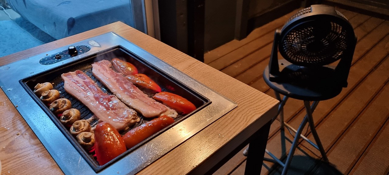 지글거리는 소리와 함께 고기 향기가 번지자 하루의 고단함은 연기처럼 흩어졌다.