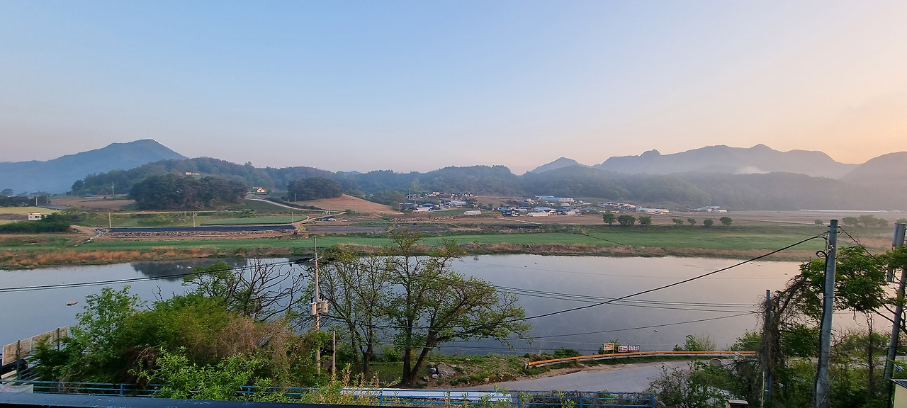 어둠에 잠겨 보이지 않았던 숙소 앞의 풍경이 비현실적인 파노라마로 펼쳐져 있었다.