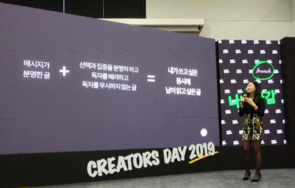 어제 ‘카카오 크리에이터스데이 2019’에 참석하러 서울을 다녀왔다. 행사 마지막 날, 글을 쓰는 카카오 플랫폼 ‘브런치’ 강연을 들으러 갔다. 5:1 경쟁률을 뚫었다는 얘기에 어깨가 한 번 으쓱 올라간다. 귀한 손님 대접받듯 준비해 놓은 초코 티라미수와 새우 핑거 푸드를 집어먹으니 어깨는 한층 더 올라간다.