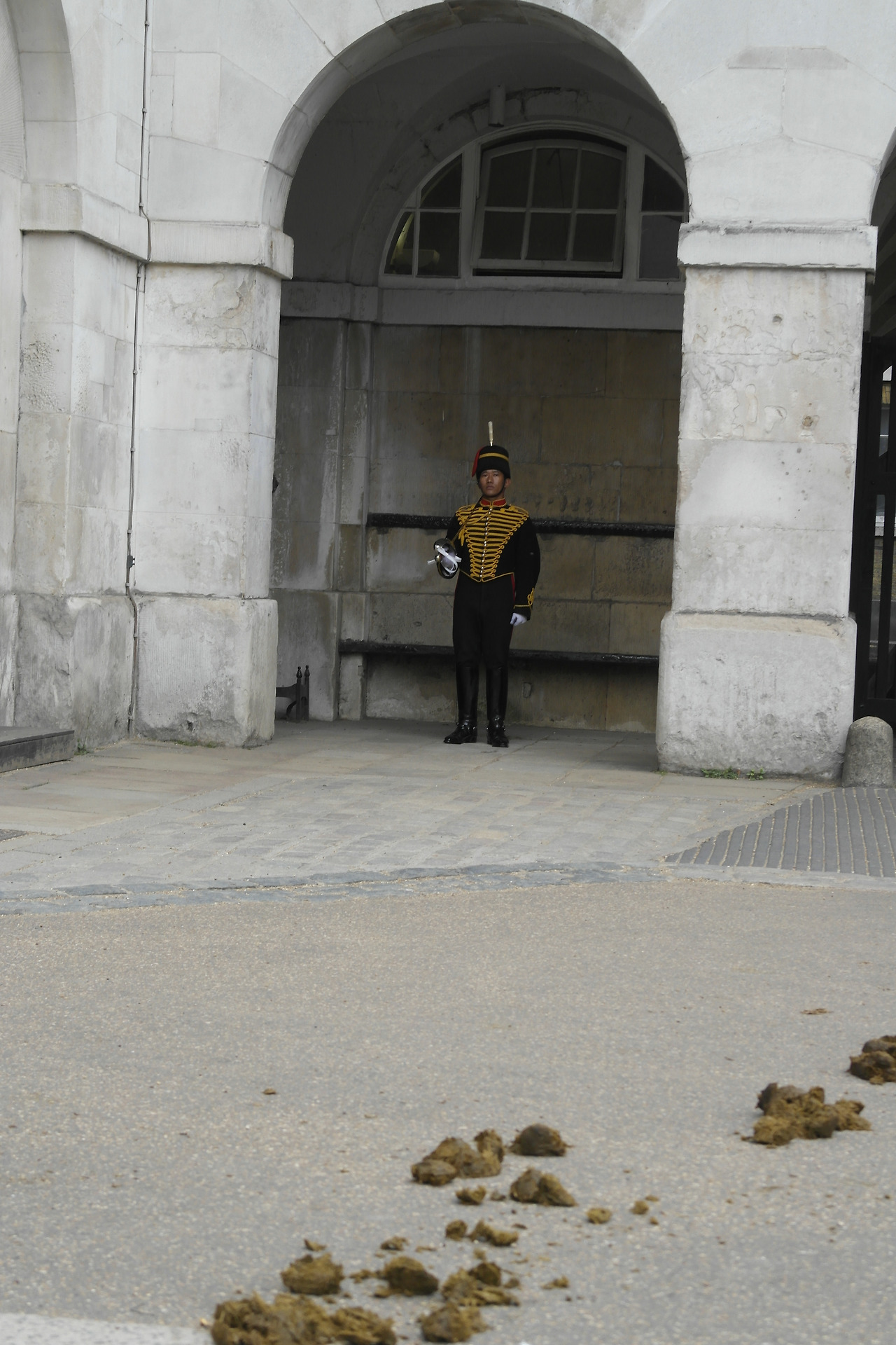 말 탄 런던 근위병이 지나간 자리