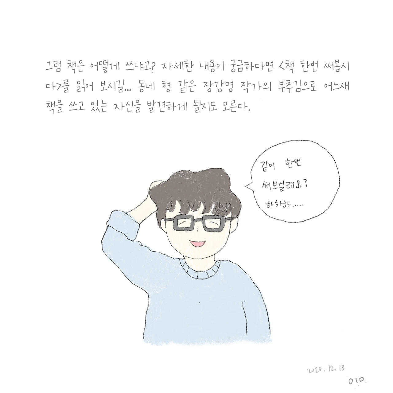 2020년 그리고 쓴 그림 독후감. 좋아하는 작가가가 쓴 글쓰기에 대한 책을 좋아한다. 작가를 직접 만난다는 느낌이 들어서다. 더군다나 이 책은 이내 작가의 일러스트도 함께 만날 수 있으니 금상첨화이다. 다시 읽어도 이 책은 무언가 쓰고 싶게 만드는 힘이 있는 것 같다.