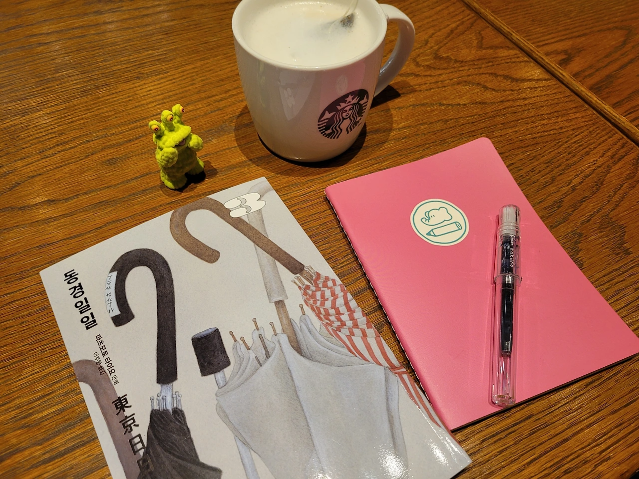 종로서적에 도착해 각자 사고 싶은 거 하나씩 골라 사기로 했다. 서점을 어슬렁 거리며 평소 사고 싶었던 책을 발견해 조금 읽어 보기도 하고, 너무 예쁜 표지의 책을 보면서 감탄하기도 하며 책구경을 했다. 아들은 피규어 코너를 진중한 표정으로 이리저리 살피더니 맘에 드는 피규어를 골랐다. 난 기다렸던 책 <동경일일 > 3권을 손에 들었다. 퇴근 시간을 피해 지하철을 타기 위해 카페에 들어가 구입한 책을 읽었다. 아이는 그림을 그리고.