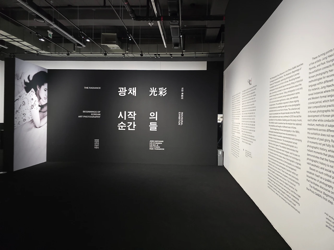 개관전시로 두 개의 전시가 준비되어 있었다. 첫 번째 전시는 《광채光彩: 시작의 순간》으로 사진미술관 개관을 기념하여 10여 년간 수집한 소장품 중 한국 사진사에서 중요한 전환점을 만든 정해창, 엄석제, 이형록, 조현두, 박영숙의 작품을 조명하는 전시이다. 이 전시를 관람하면서 ‘어떤 사진이 예술 작품이 될까?’라는 질문을 하게 되었다. 누구나 쉽게 하루에도 몇십 장씩 사진을 찍는 시대에, 어떤 사진을 예술로 정의할 수 있을까. 전시의 제목처럼 한국 사진문화사에서 사진을 ‘예술작품’으로 자리 잡아 온 여정을 살펴보는 전시였다. 사진을 기술에서 예술로 전환한 순간들에 주목한다. 가장 인상적인 사진은 첫 번째 전시인 정해찬의 전시이다. 한국인 최초로 개인 사진전을 열러 사진을 예술 제도 속에 위치시킨 선구자라고 한다. 마치 근대 회화를 사진으로 만난 것같이 고풍스럽고 고요하다. 그리고 다섯 명의 작가 중 유일한 여성작가인 박영숙의 사진이 인상 깊었다. 현대적인 얼굴의 여성들이 화면을 채운다. 전시된 작품이 1960년대 사진을 중심으로 전시되었다고 하니 이후 작품의 변화도 궁금하다.