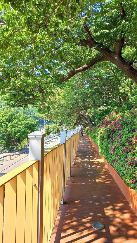 나무 난간은 제법 길고 몇 층으로 이루어졌다. 원래 그곳에 살던 나무들을 최대한 두고 전망대를 만든 모양이다. 녹음이 짙은 나무 그늘 아래 벤치까지 있어서 아침 식사를 끝낸 동네 어르신들이 많이 나와 계셨다.