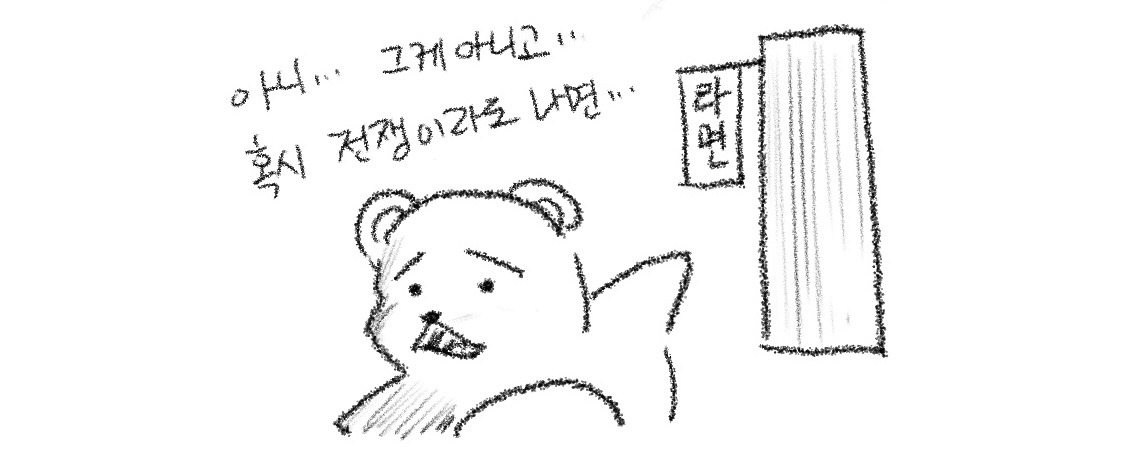술도 오르고 늦은 시각 먹은 라면으로 한층 더 배도 오른 저녁. 자기 전에 와이프에게 말을 건네 봅니다.