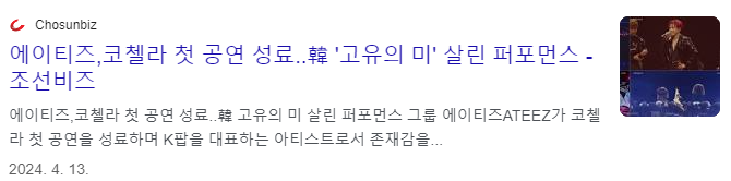 지난 4월 12일 미국 캘리포니아주 인디오의 코첼라 밸리에서 열리는 ‘코첼라 밸리 뮤직 앤드 아츠 페스티벌(Coachella Valley Music and Arts Festival, 이하 ‘코첼라’)’에서 아이돌 에이티즈는 찢었다는 말이 나올 만큼 엄청난 무대를 소화했다. 무엇보다 한국의 전통 민속놀이 ‘강강술래’, 국가 무형문화재인 봉산탈춤을 활용한 퍼포먼스는 한국 고유의 미를 더욱 강조해 케이팝의 매운맛을 제대로 보여줬다. 무대가 끝난 후에는 트위터 대한민국 실시간 트렌드 1위에 에이티즈가 당당히 이름을 올렸으며, 중국 최대 SNS인 웨이보(Weibo)와 미국 트위터 트렌드 최상위권에 랭크가 되어 월드클래스임을 입증했다. 이처럼 케이팝의 위상은 모든 국가가 인정할 정도로 성장했으며, 인기의 비결로 많은 팬들은 연습생 시절부터 혹독한 트레이닝의 결과물로 나타난 차별화된 퍼포먼스라 말한다. 단순히 듣는 음악을 넘어 팬들에게 시각적 즐거움을 제공해 좋아하는 아티스트의 춤을 따라 추고 싶은 욕망을 갖게 만들기 때문이다. 전 세계적으로 케이팝 댄스학원이 큰 인기를 얻은 것 역시 케이팝에서 퍼포먼스가 얼마나 중요한지 증명하는 결과이다.