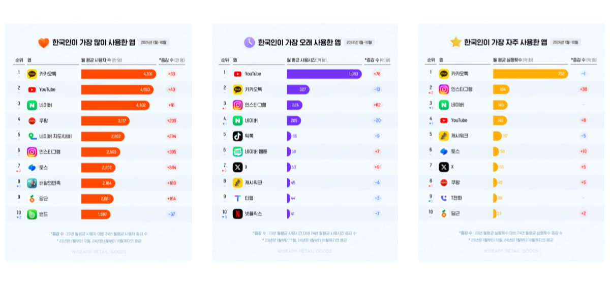 이러한 흐름에는 인스타그램이 과거 포털사이트를 넘어 유튜브를 통해 주로 이뤄지던 정보 검색의 역할을 또다시 대체하고 있는 배경이 있다. 실제로 와이즈앱이 발표한 2024년 모바일앱 총결산 리포트에 의하면 영상 기반의 유튜브가 사용자 수와 사용 시간에서 인스타그램을 크게 앞섰지만, '자주 사용한 앱' 부문에서는 인스타그램이 카카오톡에 이어 2위에 오르며 유튜브를 앞섰고 증감 폭 역시 3.8억회에 이르며 높은 성장세를 보였다. '사람들의 일상과 가장 가까운 SNS'라는 특성에 유튜브가 담당하던 '정보 검색' 역할의 비중을 흡수한 결과이다.