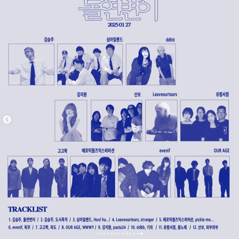 지난 27일 밴붐온은 최근 주목할 만한 인디 뮤지션의 음악을 모은 컴필레이션 앨범 [AoB 컴필레이션 앨범 Vol.1 : 돌연변이]를 발매하기도 했다. 인스타그램 음악 매거진이 컴필레이션 앨범을 발매한 것 역시도 전무후무한 사례인데, 앨범 커버에 등장하는 파란 가재는 자연에서 200만분의 1 확률로 태어나는 일종의 ‘돌연변이’로 이를 콘셉트로 각자만의 독특한 정체성과 사운드를 가진 인디 뮤지션 11팀의 기성곡 11곡과 앨범을 위한 김승주의 신곡 1곡을 앨범에 담아냈다. 밴드 관련 밈을 올리는 1인 계정으로 시작해 약 1년 1개월간 여러 콘텐츠를 홀로 기획하고 제작하며 실제 국내 인디 씬에 직접적인 영향력을 행사하기에 이른 과정은 여러모로 고무적이다.