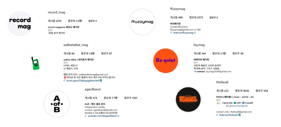 아카이빙과 큐레이팅을 기반으로 취향을 전시하는 채널이 많다 보니 음악을 주제로 한 매거진 계정(이하 음악 매거진)도 많다.