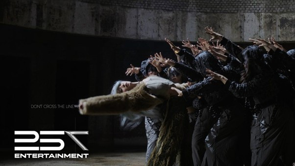 MV에서 등장하는 유일한 문구인 'Don’t cross the line' 또한 마찬가지다. 처음엔 단순히 선을 넘지 말라는 경고처럼 보이지만, 이는 무엇도 영원히 규정하지 않겠다는 태도를 선에 비유해 나타내는 것이다. 영상을 따라가다 보면 그 선은 실제로 지켜지지 않는다. 멤버들은 선 위에 있다가도 다시 넘어가며 결국 선의 경계 자체를 흐리게 한다. 따라서 이 문구는 단순한 경고보다 사회가 만들어 놓은 기준을 의식적으로 들춰내는 장치처럼 작동된다. 선(규범)을 보여준 뒤 그 선을 스스로 해체하고 벗어나는 장면들을 통해 어디에도 갇히지 않겠다 라는 의미를 시각적으로 완성하는 것이다.