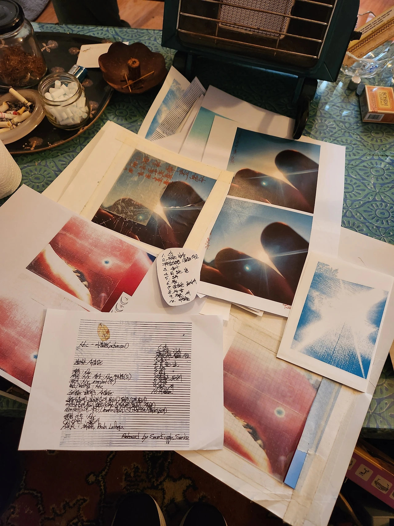 - 여름에 찍은 사진인데, 제가 산에 자주 가거든요. 아침에 산에 갔는데 그냥 태양을 찍은 사진 들 중, 손가락이 카메라를 가려서 약간 흐릿하게 찍히는. 그런 사진들 중 하나였어요. 그 사진이 앨범 주제와 일맥상통하는 사진이라 생각했어요. 앞서 말한 “빛의 양가성”으로 봤을 때, 손가락이 그것을 오히려 막고 있는 거잖아요. 빛이 들어오는 것을 차단하고 있는데, 그럼 “나는 그 중간에 어디에 있을까?” 하는 그런 생각들을 하게 되는 거죠.