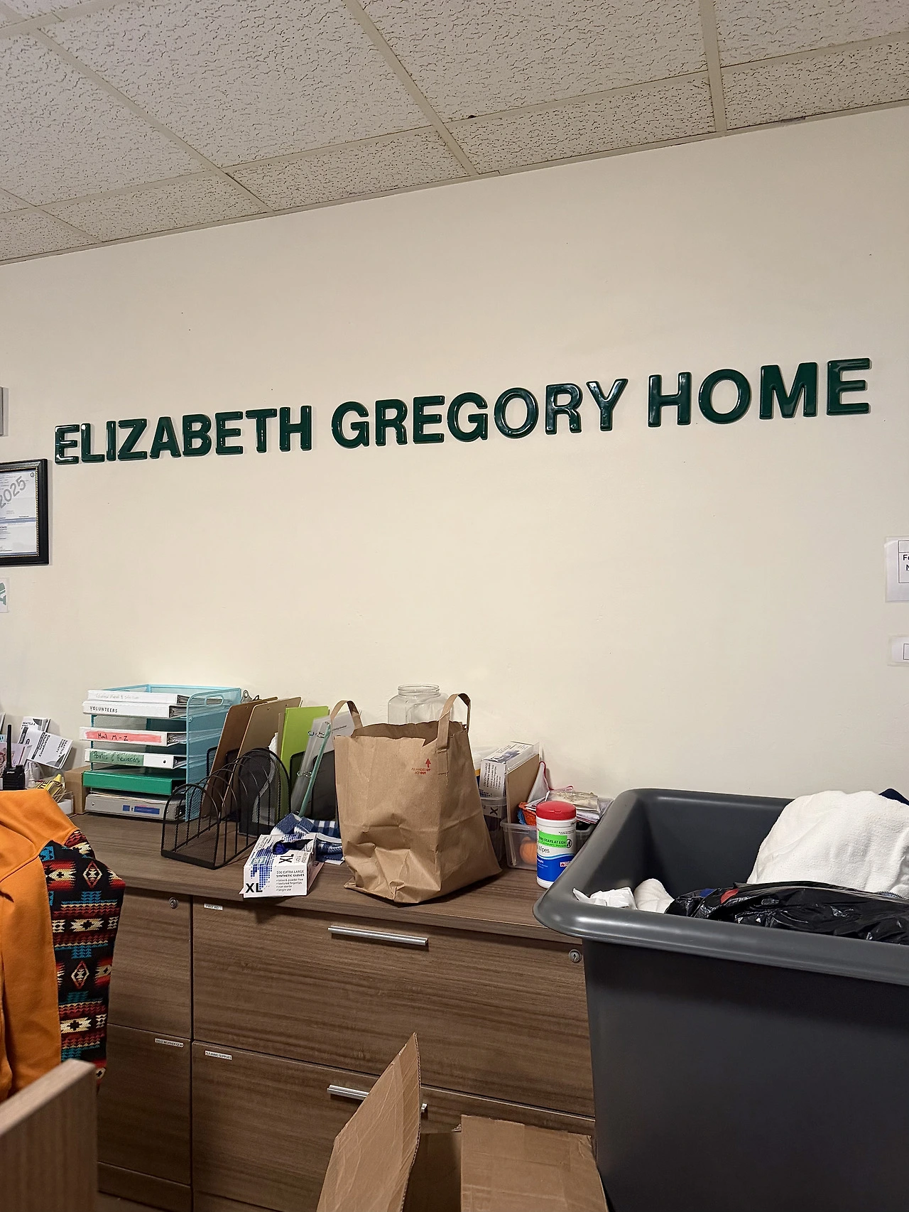 Elizabeth Gregory Home은 시애틀에 있는 비영리 단체로 노숙 상태에 놓인 여성들을 위한 지원과 쉼터를 제공하는 곳이다. 이곳에서는 낮 시간 쉼터(Day Center)를 운영하고 있다.