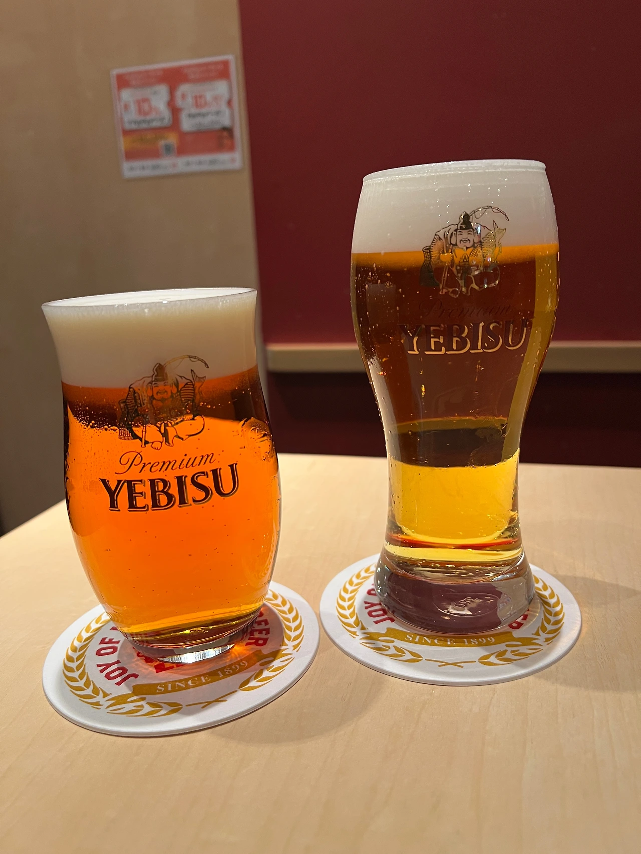 후쿠오카에 왔으니 맥주는 한 잔 마셔줘야지. 지하철 타기 전에 에비스바에 들려 생맥을 한잔씩 하기로 함. 맥주는 무조건 여기! 한 잔씩 가볍게 마시고 호텔로 복귀!!