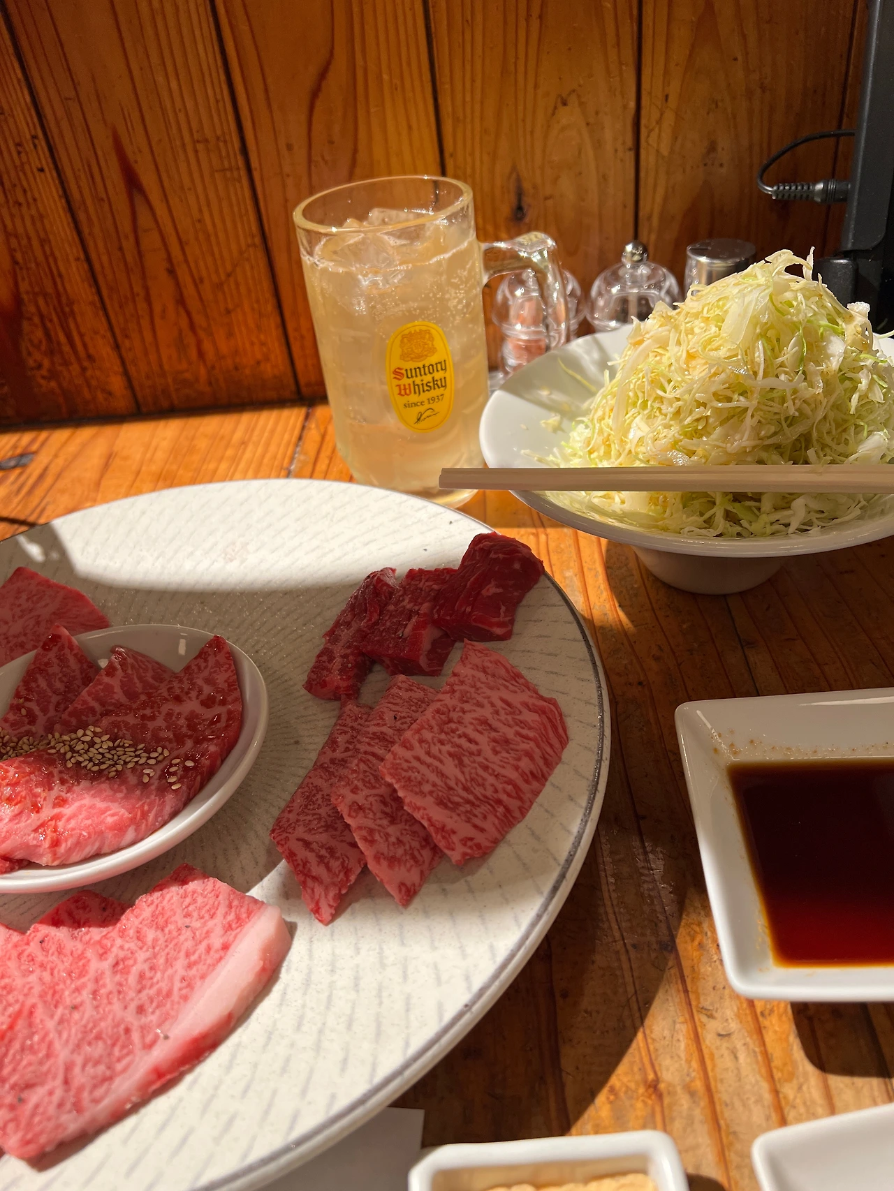 예전엔 애매한 시간대에 가면 워크인도 가능했는데 이젠 너무 인기가 많아져서 예약을 하지 않으면 엄두도 내지 못할 야키니쿠 전문점. 우리는 보통 야쿠인 지점을 갔으나, 거긴 동선이 애매하여 지난번부터 하카타 지점으로 왔는데 위치도 위치지만 여기가 숯불이어서 그런지 더 맛있게 느껴졌음. 이번에도 가게 앞에는 워크인 줄이 어마어마하게 있었음. 맛이 있긴 하지만 막 그렇게 한 시간을 기다려야 한다면 굳이? 2~3인용 모둠과 양배추 그리고 술이 늘 우리가 시키는 메뉴. 이번엔 유자가 들어간 뭔가를 주문했는데 상큼한 게 괜찮았음.