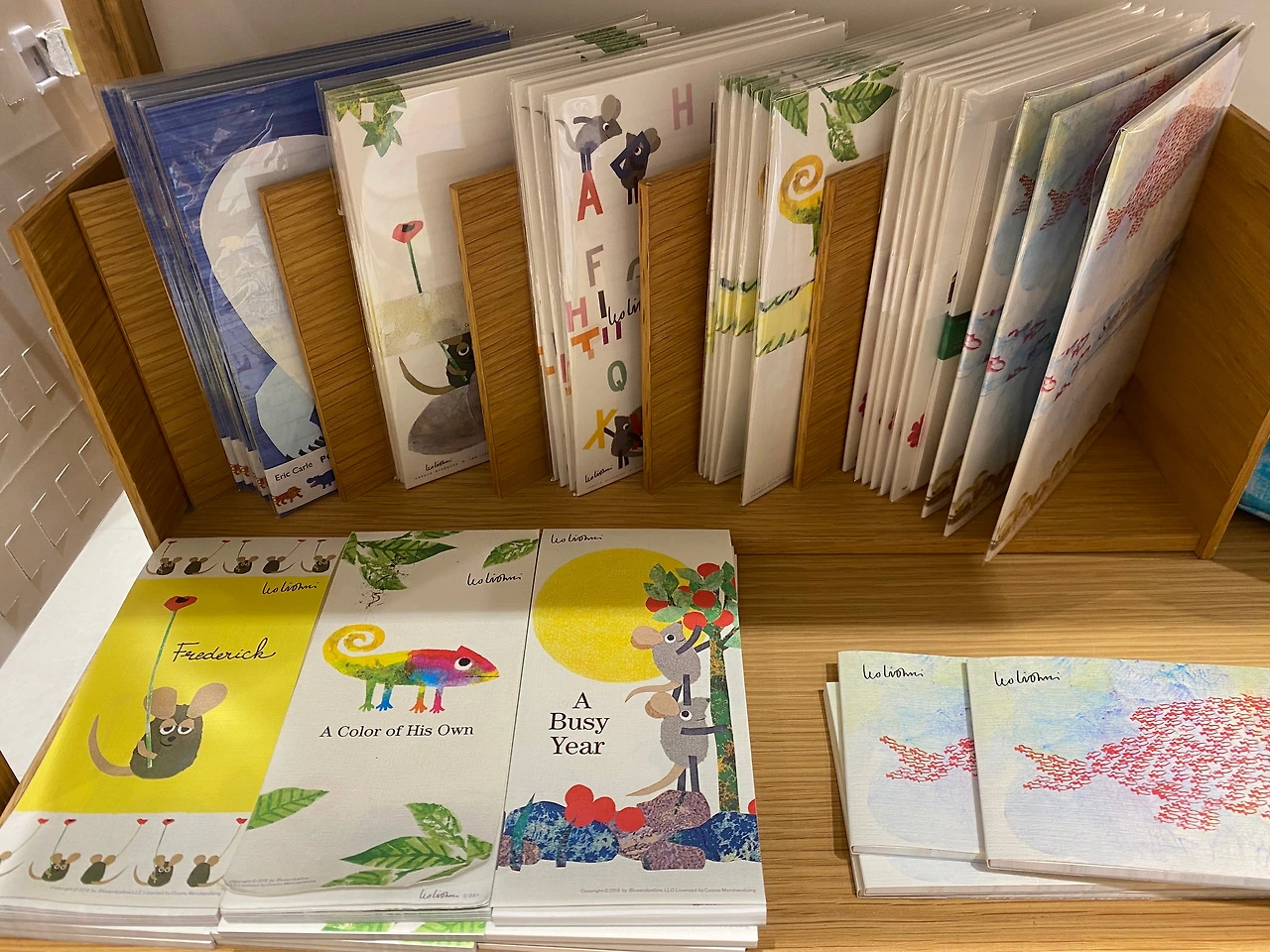 입구에 들어가자 알록달록한 가죽 케이스가 눈에 보였다. 레드, 그린, 블루 계열로 센스 있게 진열된 모습이 참 인상적이었다. 좋아하는 캐릭터인 미피의 굿즈도 다양하게 진열되어 있었고, 인기 작가인 레오 리오니의 작품을 활용한 편지지와 노트도 있었다. 화려한 색감의 카드 앞에서는 잠시 할 말을 잃었을 지경. 지갑을 단단히 부여잡아야 했다. 왜냐하면 난 아직도 가야 할 문구점이 10곳 이상 남았으니까!!