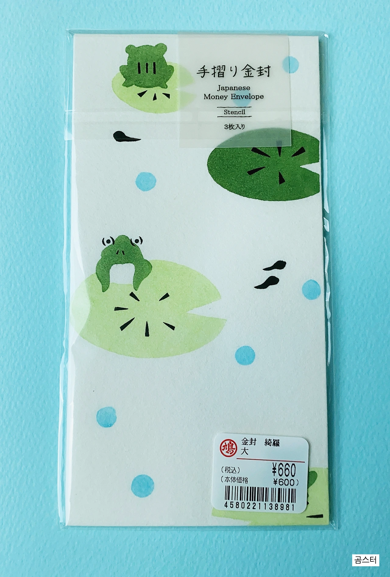 돈봉투 : 최근 개구리에 꽂혔기도 했고, 귀여운 개구리가 그려진 봉투로 갖고 있기만 해도 돈이 생길 것 같은 긍정적인 기운을 주었다. 3장에 660엔이라 싼 가격도 아니고 다른 예쁜 봉투들도 많아 고민했지만 최종 선택은 바로 이것! (예뻐서 아직까지 쓰지 못하고 있음)