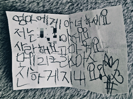 "사물함을 열었는데, 정말 정말 잘 그려진 꽃 편지가 들어있는 거야. 거기에 '나 너 좋아'라고 쓰여있었어."