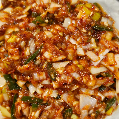 _국간장 3T, 고춧가루 1T, 간 마늘 T, 설탕 1T, 식초 1T, 참기름 1T, 청양고추, 깨 조금