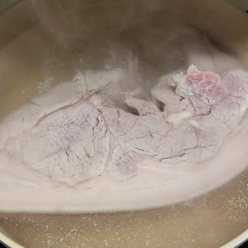 1. 끓는 물에 소금을 넣은 후 고기를 통으로 넣는다.