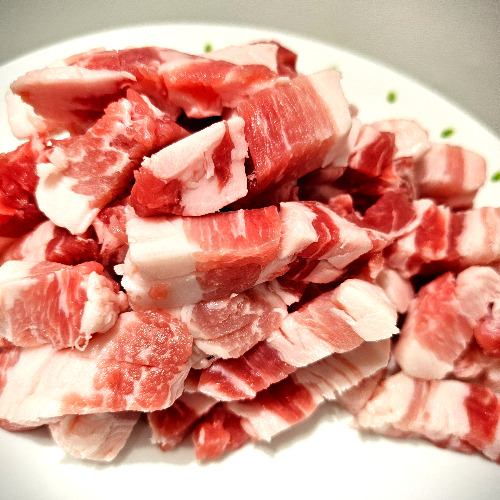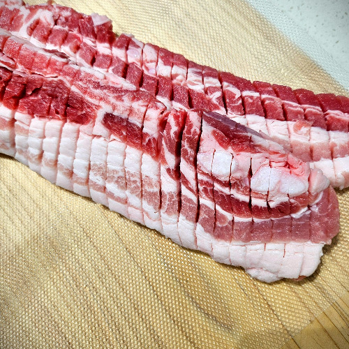3. 가지는 1cm 정도로 썰어 삼겹살과 만남을 주선한다.