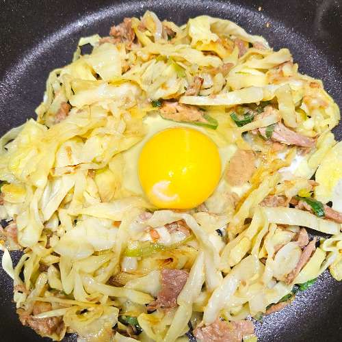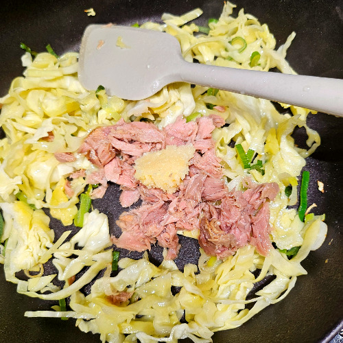 양배추의 양에 따라 참치액을 조금씩 추가하며 간을 맞춘다.