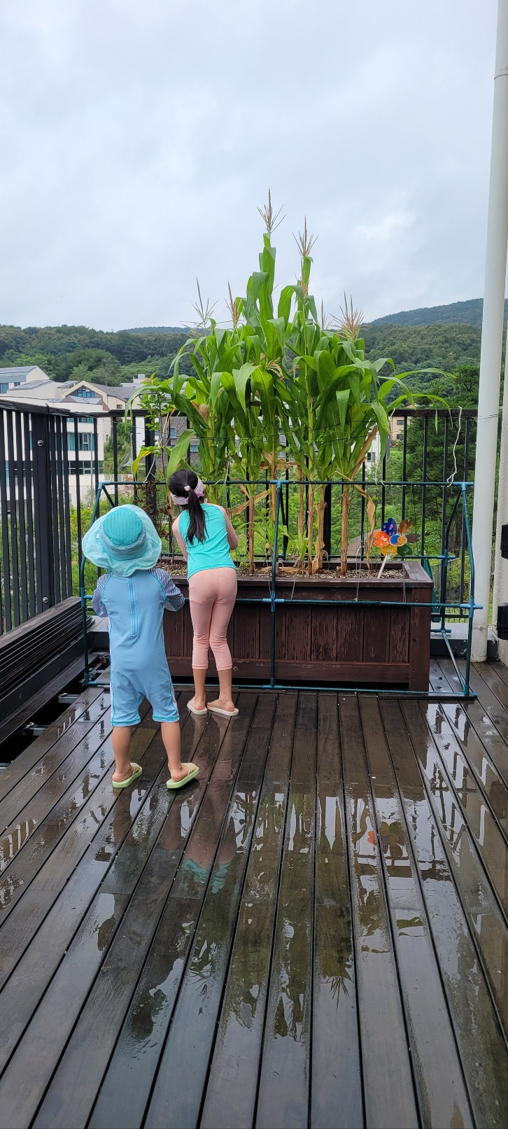 7월 말 제법 크기가 크고 수염이 갈색으로 변한 옥수수를 수확했다. 제일 큰 옥수수는 매일 열심히 안부인사 하던 둘째가 땄다. 할머니 보여드려야 한다면 외갓집가는 날 아침에 따서 외할머니와 쪄먹었다. 무척 달고 수분이 가득한 알맹이들이 최고였다. 몇 개 안되는 옥수수를 살뜰히 먹는 아이들을 보니 안 먹는다고 괴로워하던 일들이 아주 오래된 옛 일처럼 흐릿해졌다.