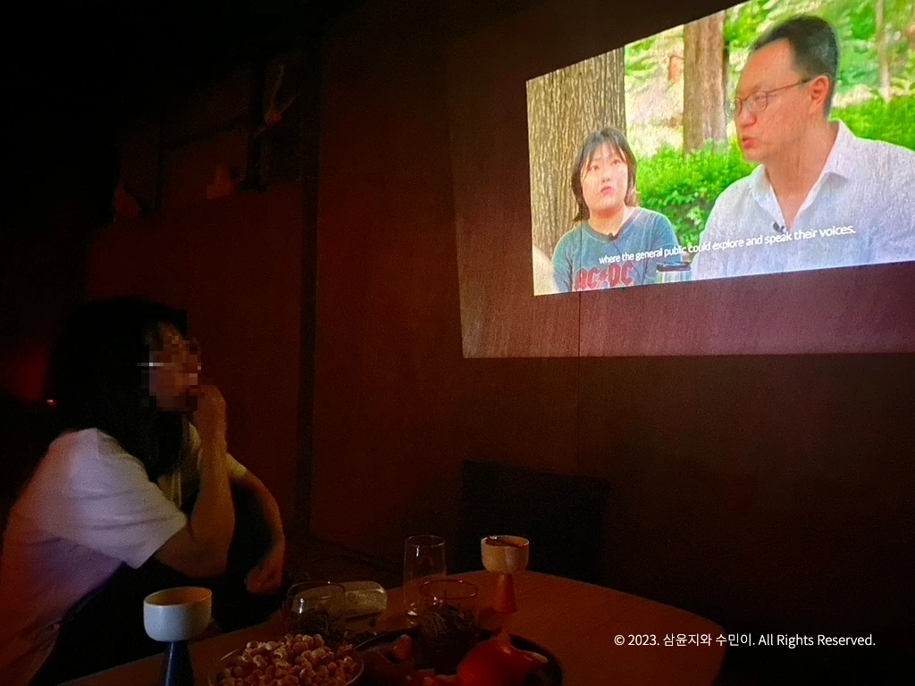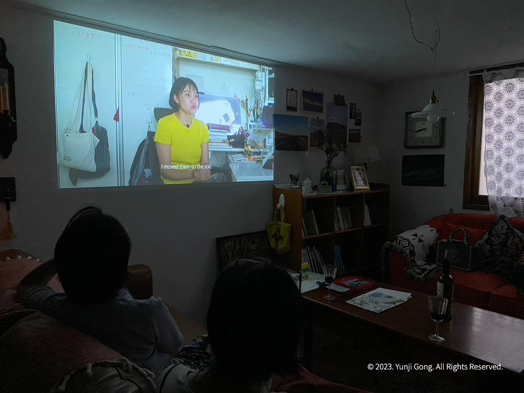 우리는 전국 제로웨이스트 숙소 중 서울 성북구에 위치한 이너시티에서 하루를 묵었다. 각자 집에서 챙겨 온 텃밭 채소와 식재료, 그리고 지역 시장에서 구입한 채소들로 근사한 저녁상을 차렸다. 든든한 저녁식사 후 해바라기씨, 볶은 콩, 뻥튀기 등을 들고 앉아 영화 상영을 시작했다. 우리는 각자의 질문을 안고 스크린 앞에 앉았다.