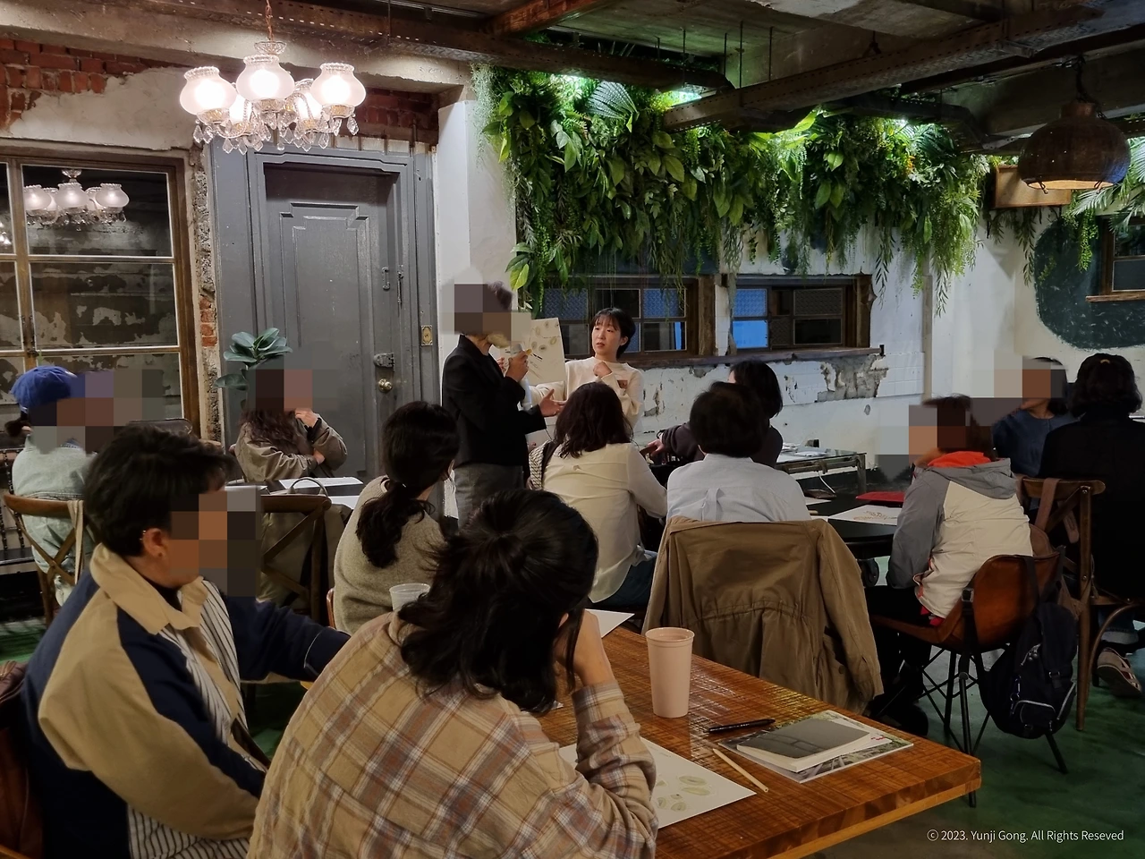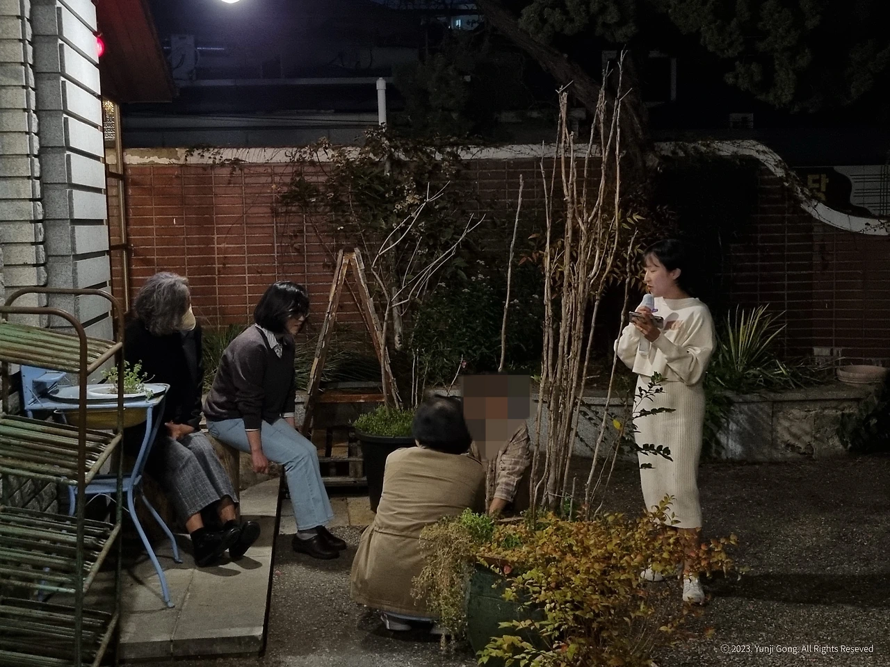 센터에서는 환경교육을 실행하는 분들과도 예술 언어의 가능성에 대해 대화를 나눌 수 있는 행사를 마련해 주셨다. 2023년 6월부터 진행해 온 생태시민 양성 교육의 일환으로 <우정의 언어 예술> 북토크와 <공존사전> 워크숍을 진행했다. 참여자 대부분이 환경교육에 종사하시거나 관심 있는 시민으로 어떤 이야기를 나누게 될지 무척 궁금했다. (링크)