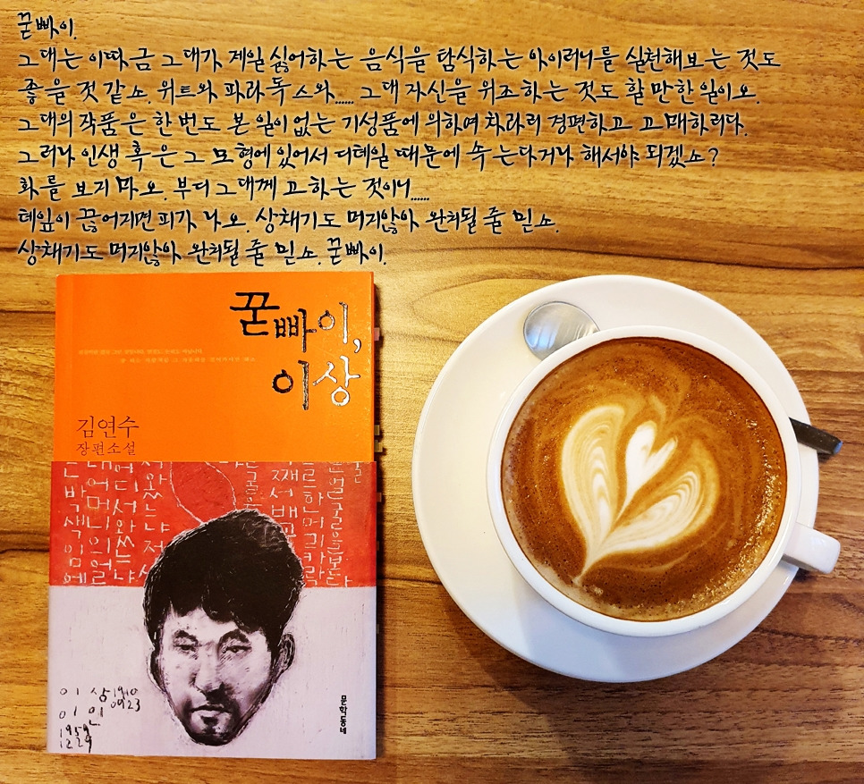 '오빠의 데드마스크는 동경대학 부속 병원에서 유학생들이 떠놓은 것을 어떤 친구가 국내로 가져와 어머니께까지 보인 일이 있다는데 지금 어디로 갔는지 찾을 길이 없어 아쉽기 짝이 없습니다'라는 이상의 동생 김옥희의 회상을 읽는 순간, 어딘가에 있을 『꾿빠이, 이상』이란 소설을 떠올렸다는 김연수 작가님의 이 작품은 세 사람의 시점으로 진행되는 장편소설이다.