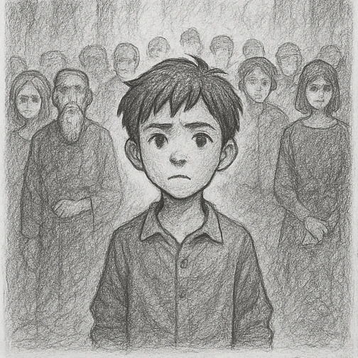 한참을 침묵하던 린은 스케치북을 꺼내 들었다. 그녀는 조심스럽게 연필을 들어, 페이지를 넘겼다. 그 위엔 이전에 그렸던 ‘입 없는 자’가 그려져 있었다. 하지만 그녀는 이번엔 다르게 그렸다.