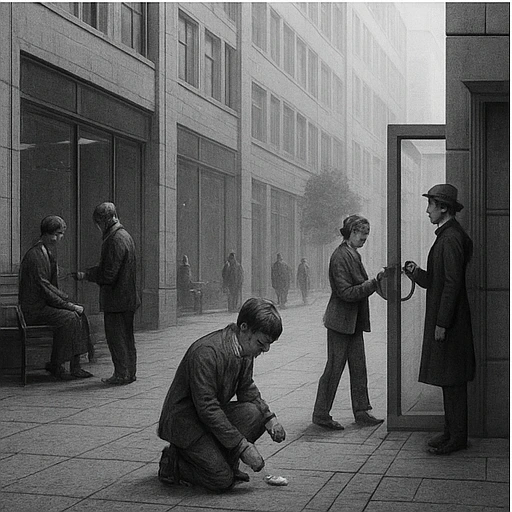 도시 전체에 ‘기계가 사람의 행동을 모방한’ 듯한 위화감이 퍼져 있다.