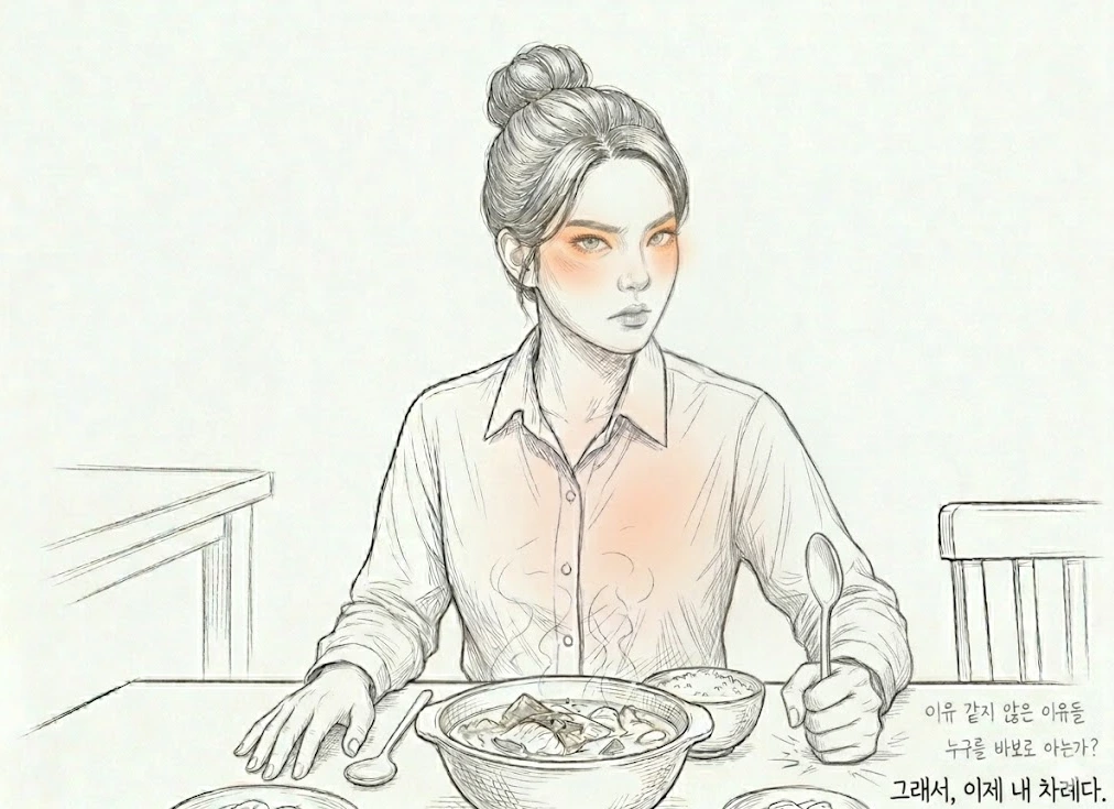 나는 숟가락을 내려놓았다.