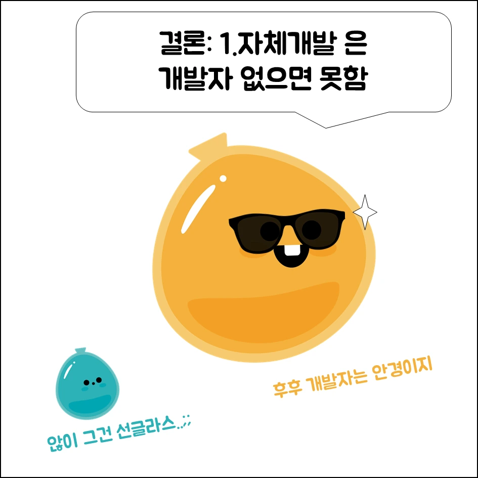 결론: 1. 자체개발은 개발자 없으면 못함. 땅땅
