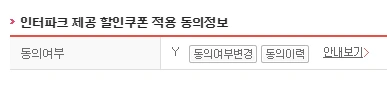 STEP2. 인터파크 제공 할인쿠폰 적용 동의 정보 -> Y로 변경