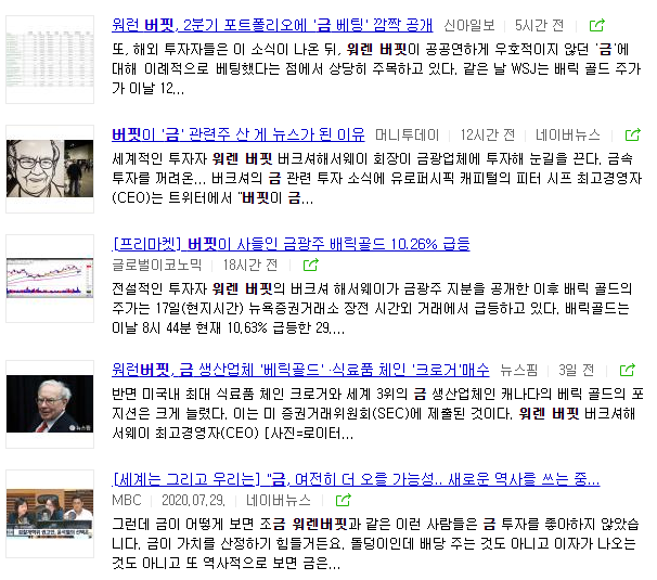 금을 캐는 금광 회사를 매수했다는 뉴스도 나오고 있죠.