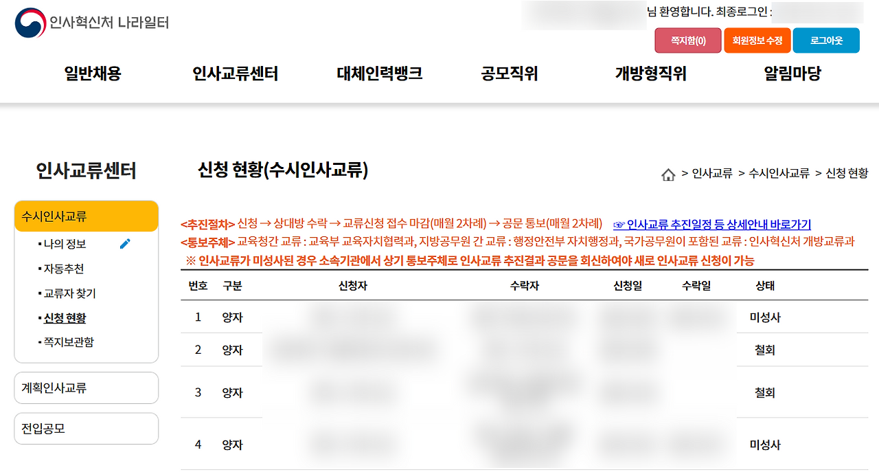 마침 상대 기관이 감사 기간에 들어가며 인사교류 신청은 철회되었고