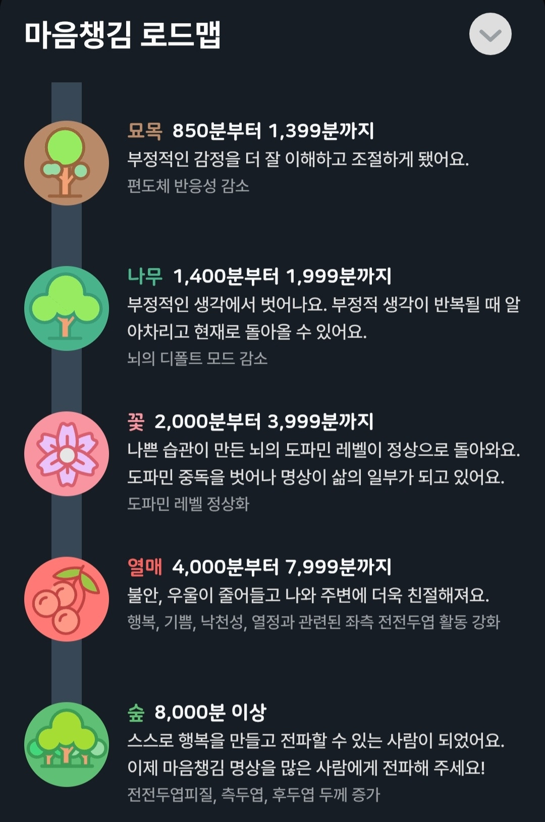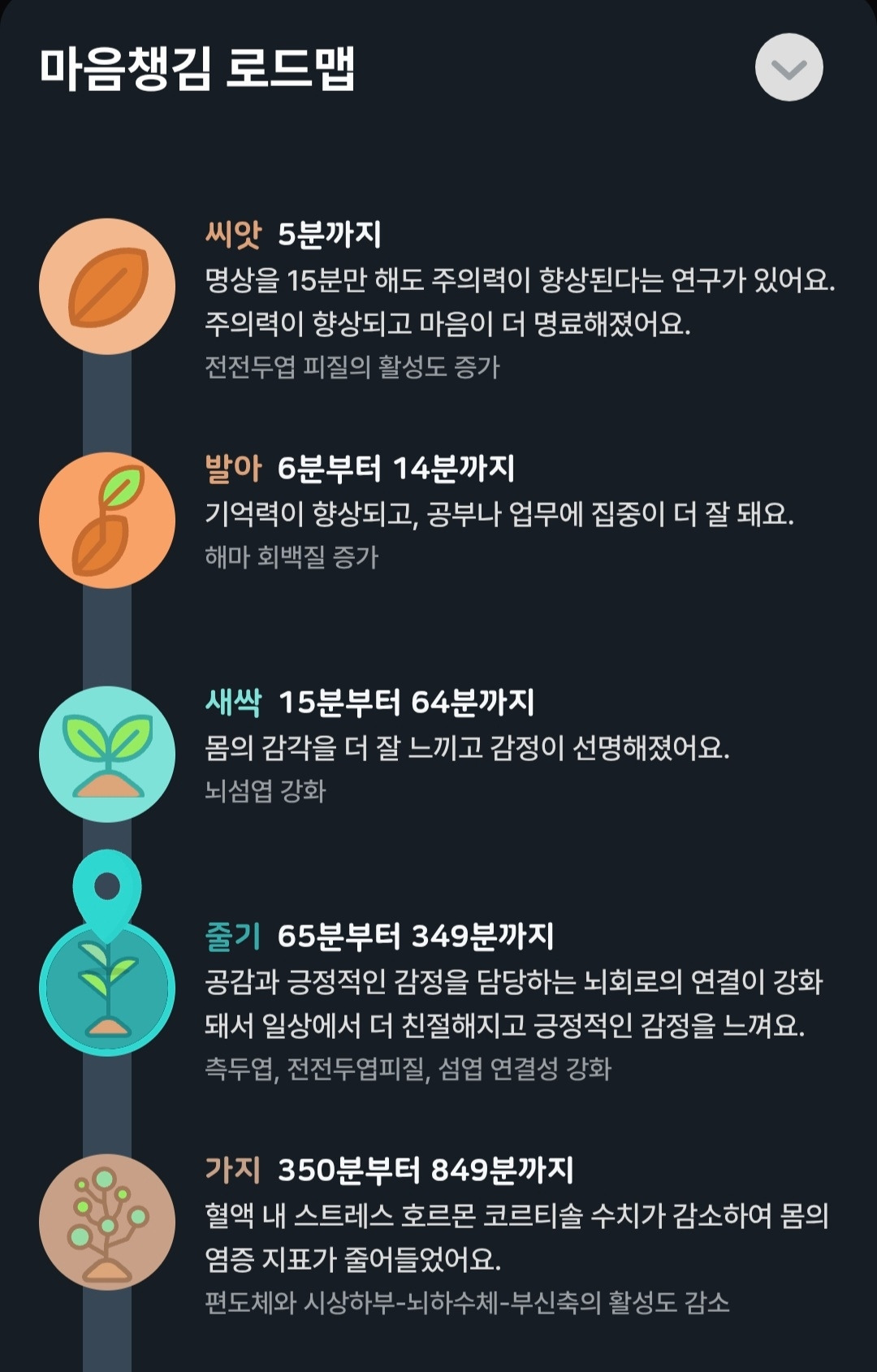 10. ‘마음 챙김 로드맵’. 이것은 현재 내가 명상의 어느 단계인지 보여준다. 총 10단계 중 나는 4단계다.