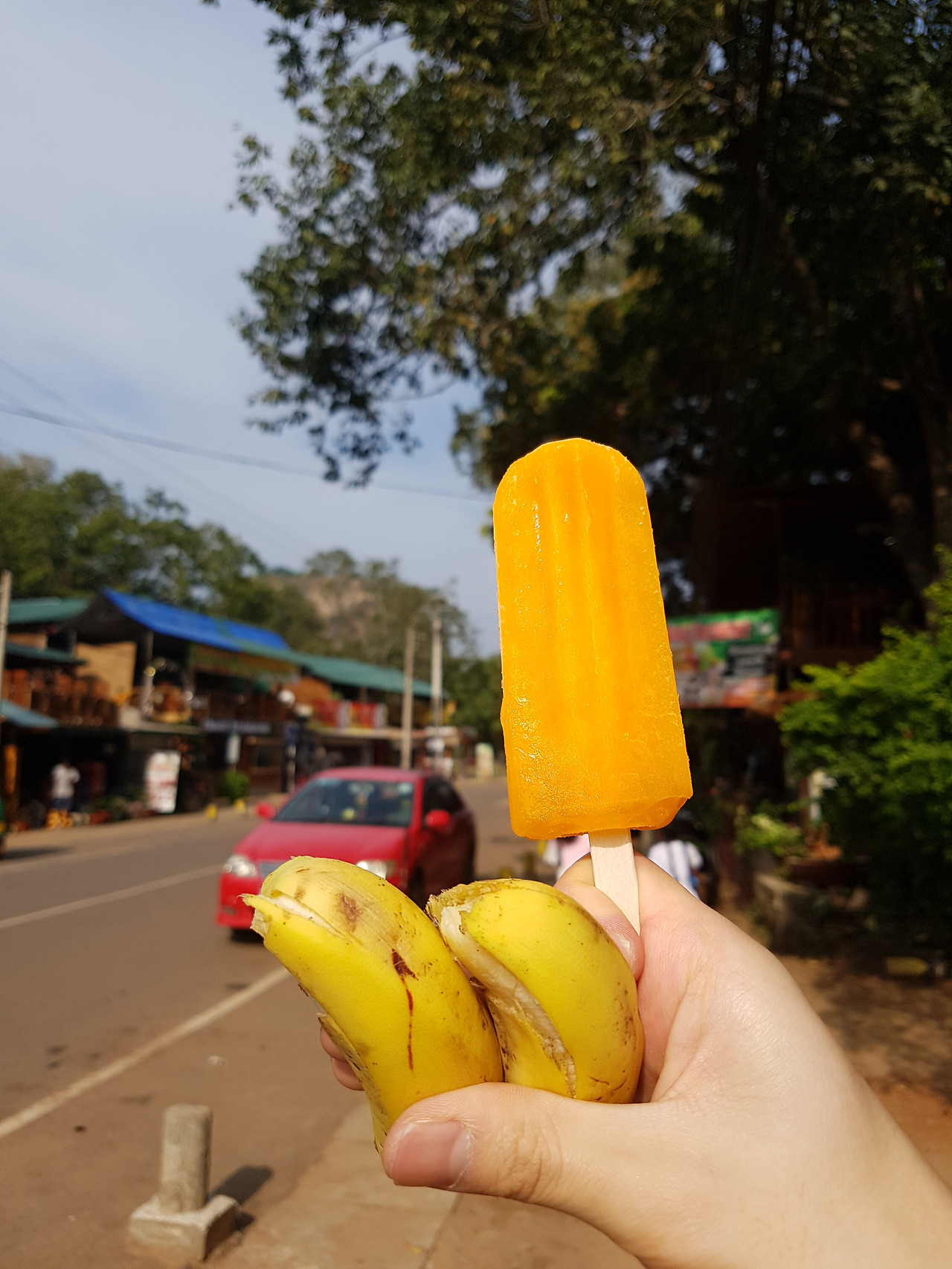 오렌지맛 아이스크림. 바나나는 아주 흔한 음식이라 어디서든 낱개로도 판다