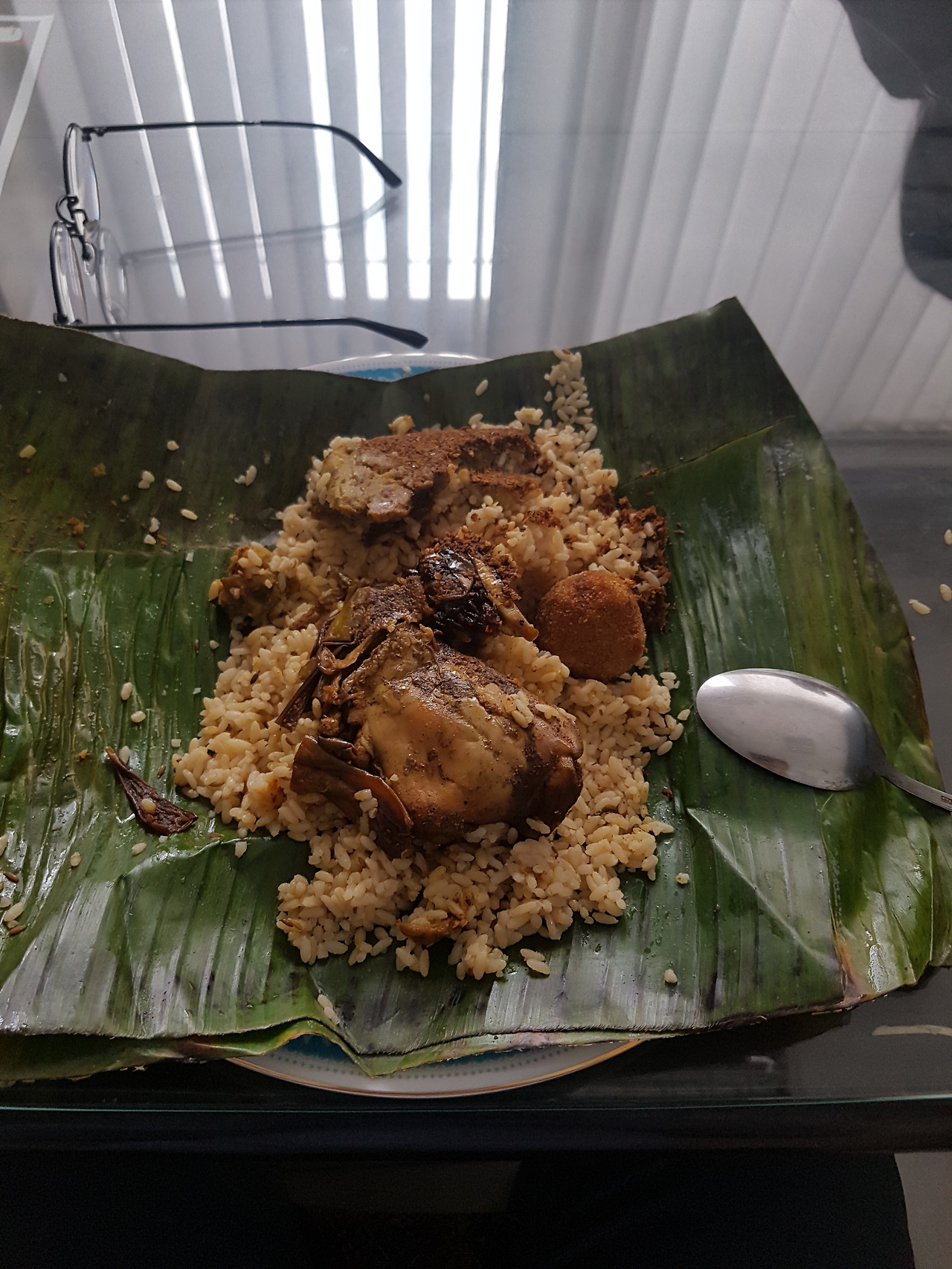 내가 사먹은 음식중 가장 현지스러운 음식은 이름은 모르지만 큰 잎 안에 들어있는 밥과 닭고기, 여러 야채와 향신료가 조합된 음식이었다. 식당에서 포장할 때 보고는 사실 담양이나 전주 등에서 먹은 연잎밥이나 대통밥을 생각했다. 하지만 생각보다 내 입에 맞진 않았다. 향이 너무 강하고 짰다.
