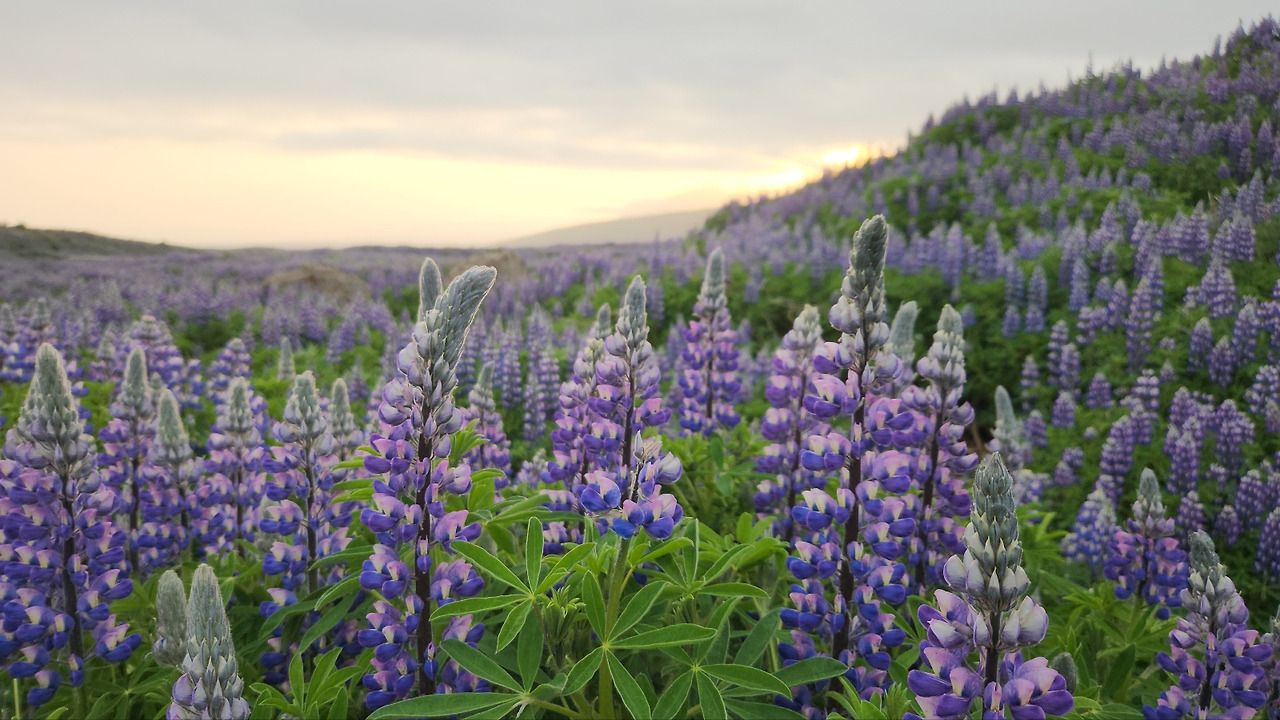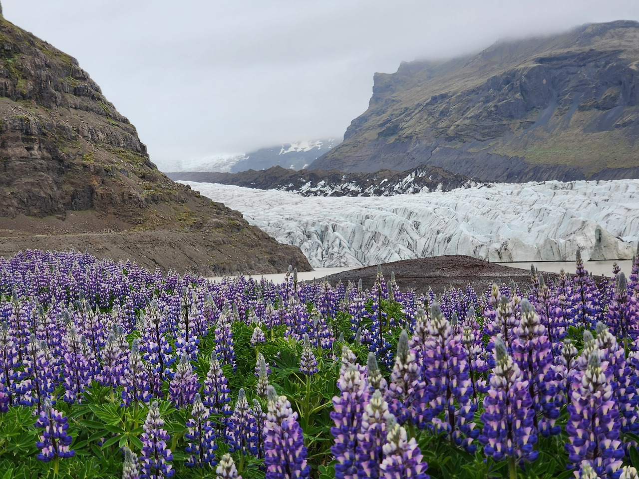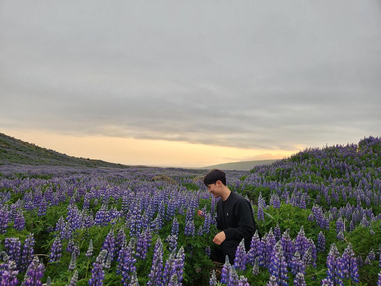 그리고 빙하 옆 언덕에는 보라색 꽃이 해가 지는 쪽으로 쭉 펼쳐져 있었습니다. 바로 옆엔 빙하가, 그 옆엔 예쁜 꽃밭이라니… 세상에 이런 곳이 있구나, 내가 살면서 이런 걸 보는구나 감탄했습니다. 무슨 복이 있어서 내가 이런 걸 보는지 의아할 정도였습니다.