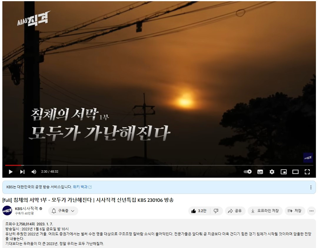 2023년 1월 14일, 오후 3시 / 출처 : 시사직격 유튜브