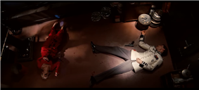 누워있는 둘의 모습이 확대된 채로 나온다. 똑바로 누워 총을 들고 있어 머리가 프레임 상단에 있는 프레데릭과 엎어져 쓰러져 고통에 신음하며 머리가 프레임 하단에 있는 쇼산나의 대비를 통해 극적 대비를 준다. 프레임 상 조금 더 높은 곳에 있는 프레데릭이 낮은 곳에 있는 쇼산나를 끝장낼 것을 암시한다. 숏 전체적으로 슬로모션이 걸려있다.